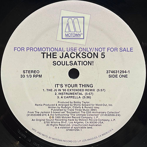 J5時代、69年リリースのISLEY BROTHERSのカバー、の95年REMIX!! 更にB1にオリジナルバージョン、こちらも多くのカバーが出ているB2やMJ名義のB3、B4とHOTすぎる内容のPROMO ONLY12"!!